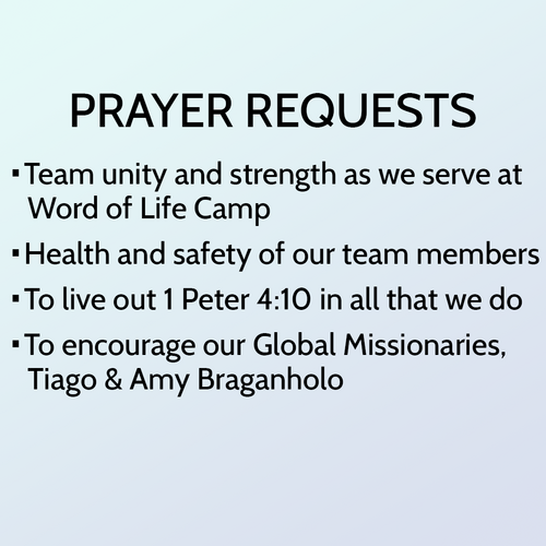We'd love for you to pray for us as we prepare. Our team will be commissioning on Sunday, July 2