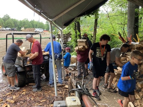 When you hear someone talk about chopping wood, you may picture in your mind one guy with an axe chopping some firewood in a backyard - at least I did. Boy was I wrong. These men were working tirelessly to clear an area of forest to build new cabins, and they had all the cool toys to do it too. There were chain saws buzzing, a hydro stump cutter cracking the most massive pieces, and some guys thwacking an axe to chop up firewood for bonfires at camp. It was so cool to see them all working so hard and quickly incorporate the rest of us into their assembly line of piling the chopped pieces. Do not worry, there were no serious injuries and everyone went to dinner with all the digits and limbs they originally came here with.