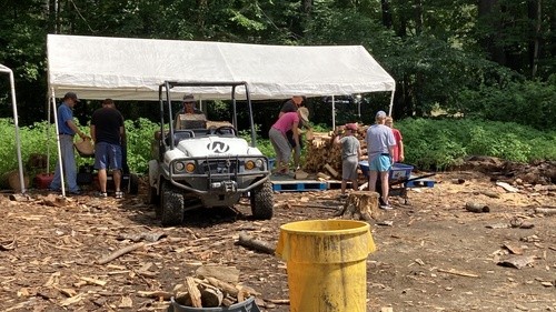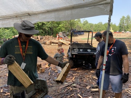 After the rain and excitement of Monday, we were greeted by a beautiful blue sky, sun, and amazing views of the trees and lake. We spent the morning working on splitting wood, cleaning bathrooms, and showing love to the youngest campers on site, same as Monday.