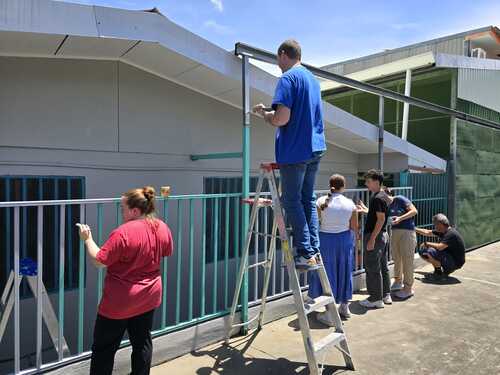 Today, we met needs. The beauty of mission trips is to see new needs and stretch to meet the new needs outside of our own comfort. This morning, it was time to clean up and beautify the school cafeteria with paint. As an American, this means to get out the paint sprayer and rollers but in Costa Rica, this means a team of 16 with lots of ladders, metal scraping utensils, and small paintbrushes (and no tape, safety goggles, or drop cloths). We climbed up ladders and scraped and painted ceiling panels, metal gates, and walls. And we did it in record time. When we were done, we ate in the school cafeteria and admired all the work we had done, but also smiled at newly familiar faces, both of children and teachers. Those faces recognized we were there to meet needs. We had met needs.