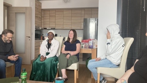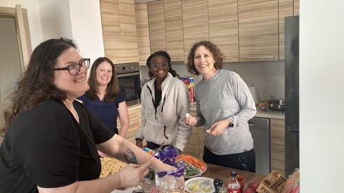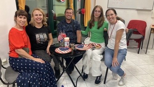 After our fun stop at Mitka, we headed back to the apartments and prepped for our American party. Morris had a chance to chat with our friend Igor and share the gospel and purchase some hot dogs from his burger stand for our party. Our team also baked cookies, brownies, chopped veggies, made rice krispy treats along with potato chips, peanut butter and jelly sandwiches.