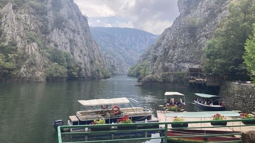 After our devotionals, we went over the details of the day and our prep work for the American party that will be happening tonight. Then our team had a chance to head over to the Albania side of Macedonia to Matka Canyon. Matka in Macedonia means "womb". The canyon is one of the most popular outdoor destinations and home to several medieval monasteries. We enjoyed a wonderful lunch and then hiked the canyon to the top. Macedonia is so beautiful!