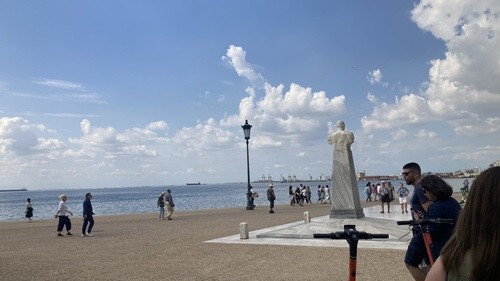 This morning our team woke up early and checked out of our apartments and headed into the van for a three hour ride to the country of Greece. We will finish the day exploring Thessaloniki and then heading to the airport early tomorrow for our flights back home. For all of us Texans, it takes forever just to get out of the state of Texas, it's crazy to think that in just three hours, you can be in another country. As you enter Thessaloniki, one of the first monuments you see is the White Tower.
