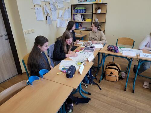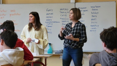 The school bell rang for second class and then we welcomed our students. There were six teaching teams of two from our group. Ages of the students ranged from boys and girls sedkuna alfa & beta (12/13 year olds); Tercie alfa & beta (13/14 year olds) and kvarta alpha & beta (14/15 year olds). Then the lessons began for the day at 8:55 am with four small teaching breaks in between concluding before lunch at 12:35 pm. Our teaching topic was learning about our students, their families & friends. We had various assignments, lessons, games and group projects and we interacted with them. Everyone on the team agreed that our first day was loads of fun and that teens are the same even all the way around the world. We did have a few funny stories- one classroom the girls prior to school that morning tried to pierce their ears in the bathroom. Several students wanted to take "selfies" and many students wanted a career as teachers, doctors, nurses and social media influencers!