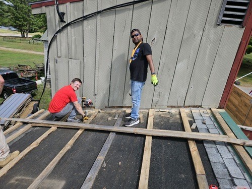 After lunch, we were promoted to "paint rollers". Then Ms. Denise organized a weed pulling contest for the kids. Jake was the first to pull 100 weeds. Luke got the most weeds pulled overall. Ms. Denise then rewarded us with candy (Thank you Ms. Denise!). There is still some painting to finish for tomorrow, but the roof was completely and utterly done.