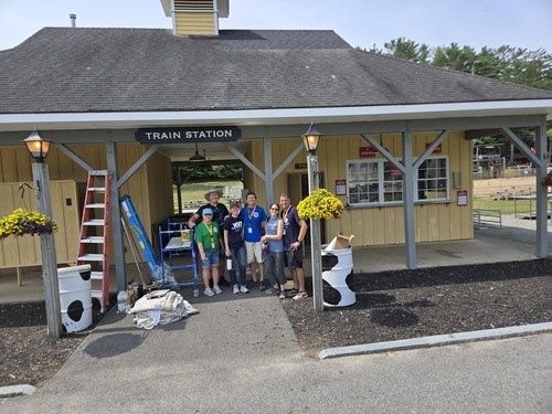 - Team One returned to the Train Station to finish the last touches of painting. It was satisfying to complete the job we had started earlier in the week, knowing future campers will enjoy a refreshed and welcoming space.